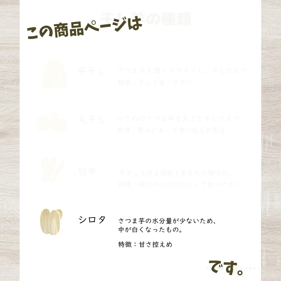 普通の平干しより、芋の風味が強く歯ごたえがあり、甘さ控えめです。
